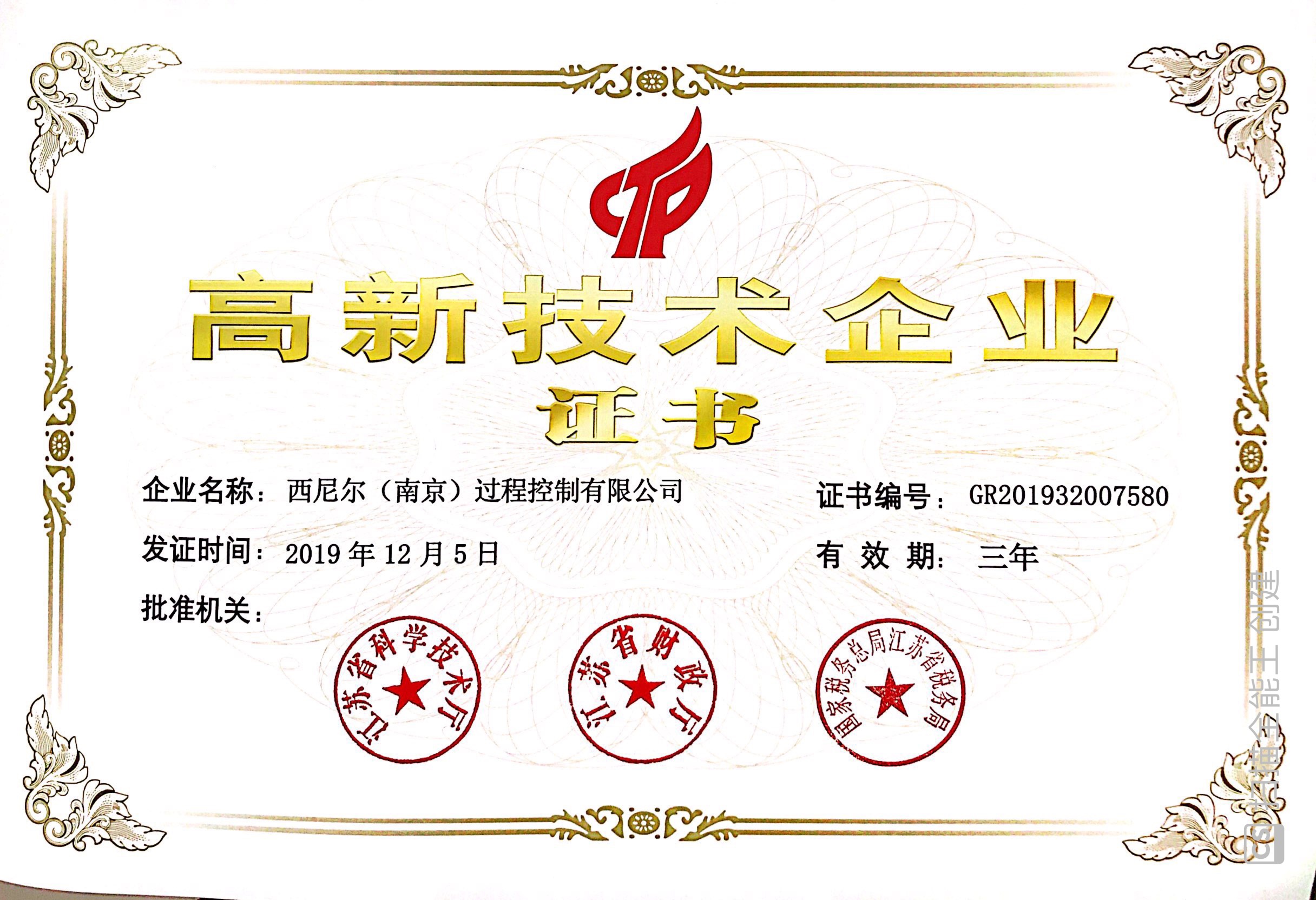 高新技術(shù)企業(yè)證書